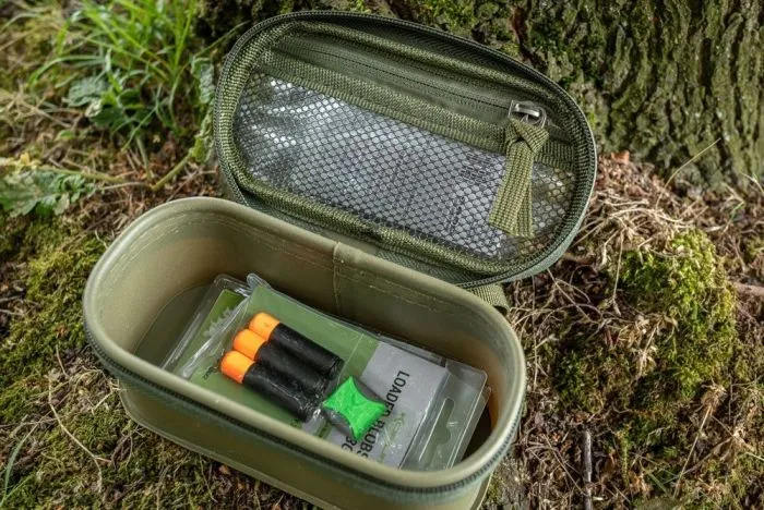 These useful pouches are made to fit perfectly inside the Korum luggage ranges. Can be used for weights, feeders, terminal tackle, line, and any number of accessory items you may want to take to the bank. The pouches also feature a handy zip compartment in the lid for extra items, or simply to label what is inside. Made from a hard-wearing 0.8mm thickness EVA for strength and longevity.