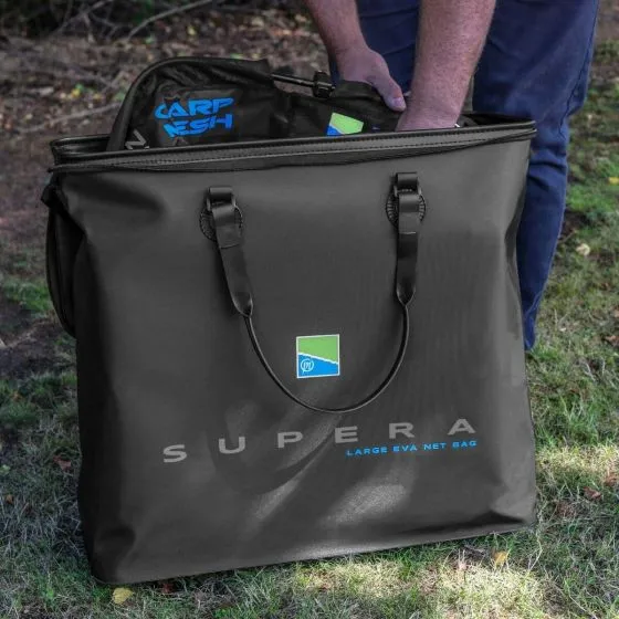EVA Net Bags are perfect for storing keepnets, side trays, landing nets, riddles, etc. The Large Supera EVA Net Bag is the ideal size for soting multiple keepnets and other items of tackle.